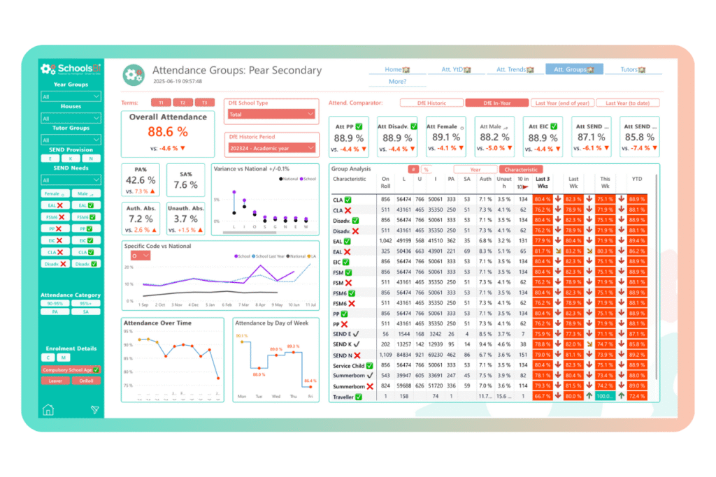 Bespoke data dashboards that automatically display the important insights from your MIS and other softwares, enabling your setting to quickly evaluate, action, and improve.