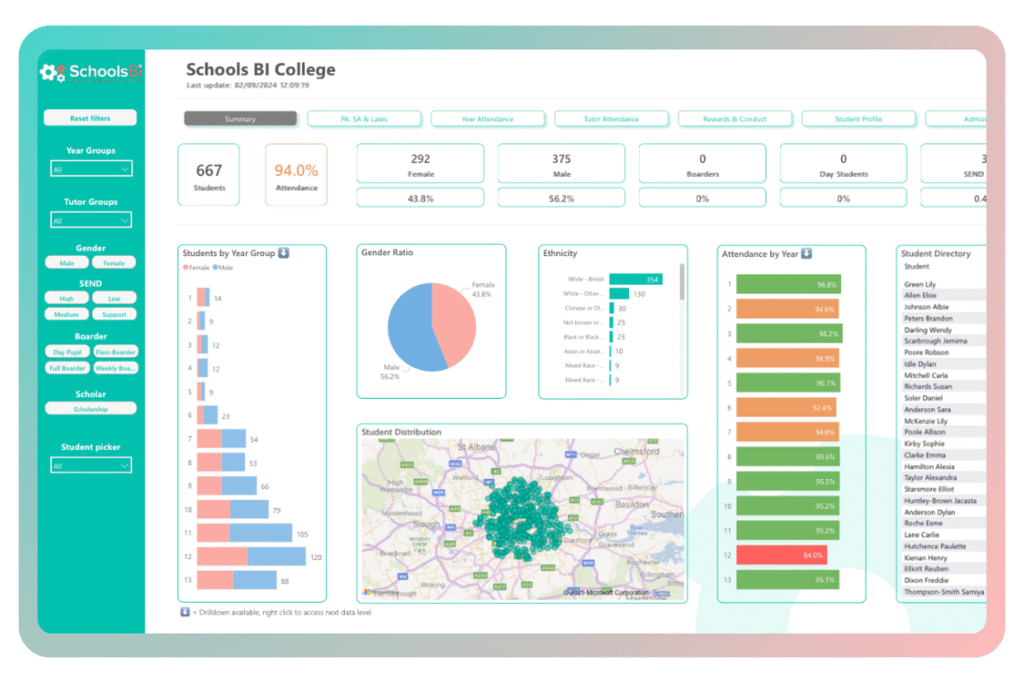 The Schools BI Attendance Toolkit gives UK state schools a clearer picture of attendance by pulling together data from most popular MISs into one streamlined system. With real-time insights, early warning indicators, and tailored reports, school leaders can spot issues sooner, support pupils more effectively, and spend less time buried in admin.
